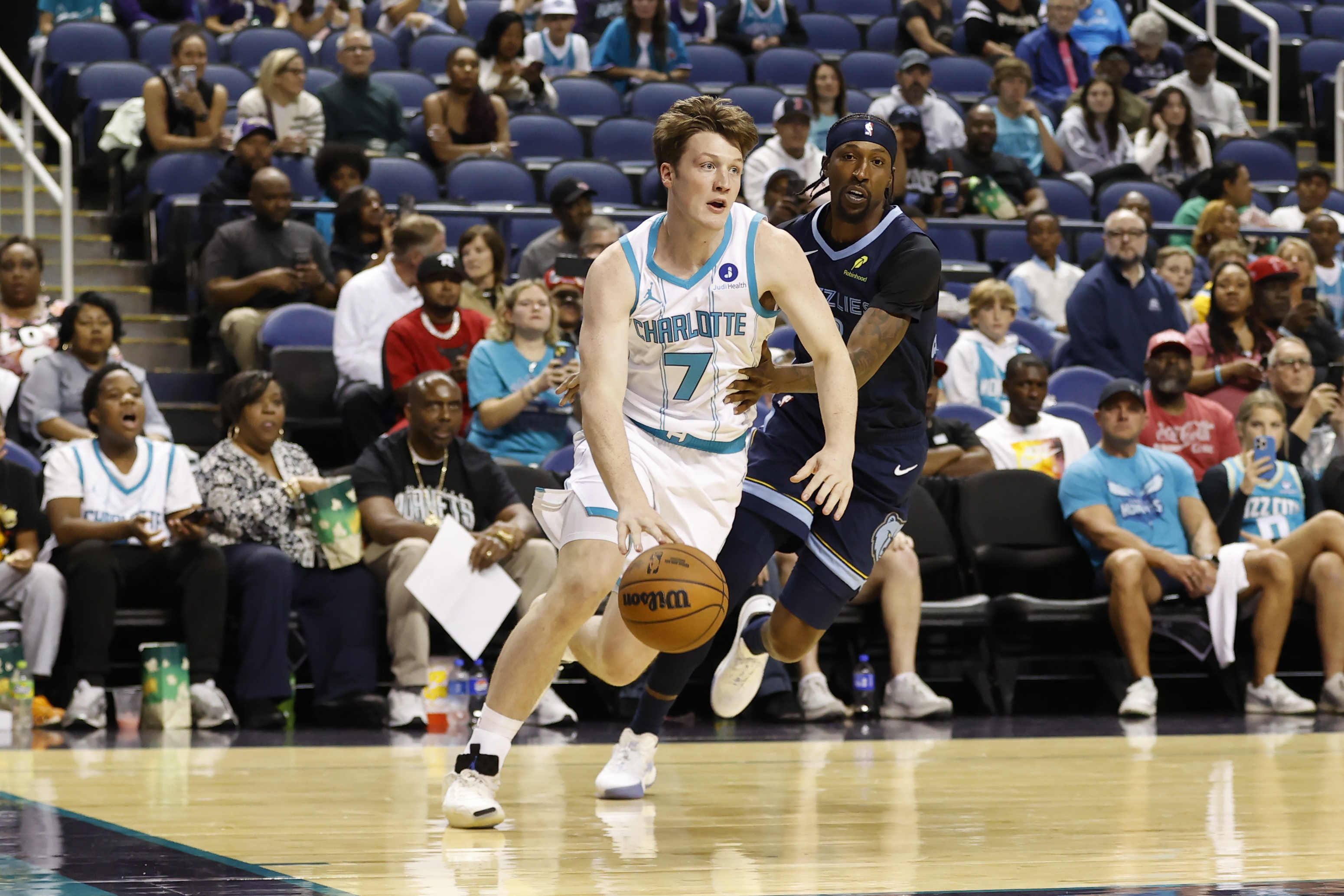 In the first half, the top picks of the two teams also faced off. Among them, Edgcomb, the No. 3 pick of the 76ers, made 4 of 8 in the half, 1 of 2 three-pointers, and scored 9 points, 2 rebounds, 4 assists, 2 steals, and 1 block; Hornets No. 4 pick Kniper scored 2 of 5, 1 of 2 three-pointers, and scored 5 points, 2 rebounds, and 1 assist.