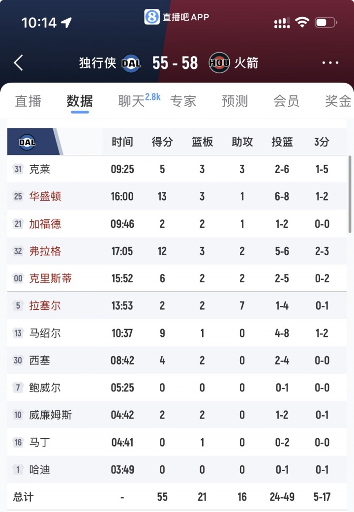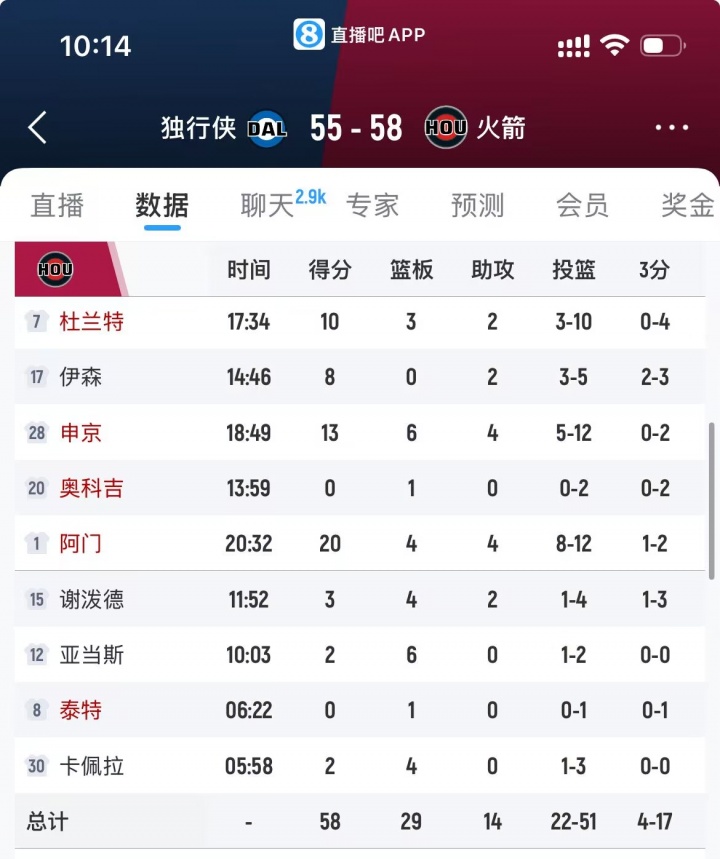 The Rockets led the Mavericks by 3 points 58-55 in the first half! Amen 20+4+4! Shepard was trained by the military