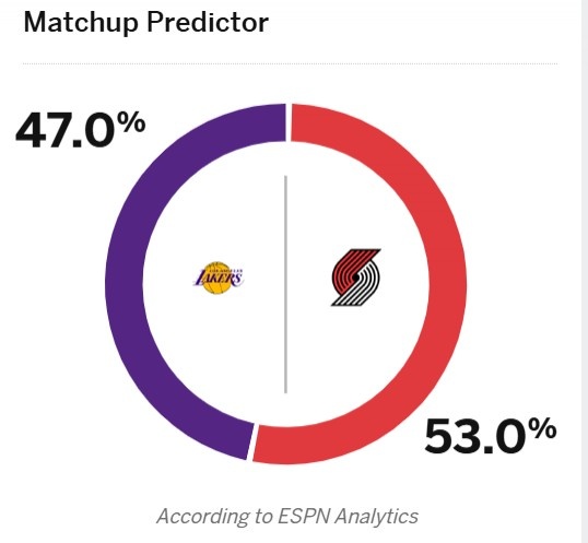 Tomorrow, third vs fourth in the Western Conference! ESPN predicted winning percentage: Back-to-back Lakers 47%, Trail Blazers 53%