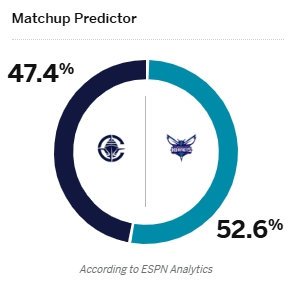 ESPN predicted the winning rate of this game: the Clippers are 47.4%, lower than the Hornets' 52.6%.