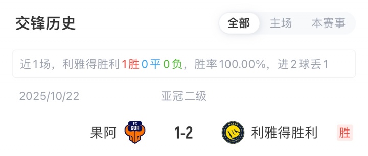 Victory AFC Champions League second-tier group It ranked first in Group D with 3 wins in all games, and ranked first in Saudi Arabia with 21 points in 7 league games. In the second group stage of the AFC Goa, it ranked bottom in Group D with 3 losses in all games. It ranked second in the Indian Super League with 14 wins, 6 draws and 4 losses in the league, with 48 points.