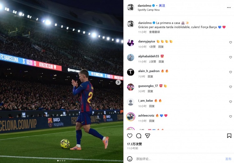 Already joined for 15 months! Olmo commemorates social media: first game at Camp Nou, thanks fans for their support