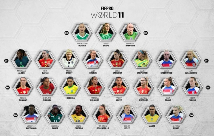 The International Football Players Association (FIFPRO) officially announced the 26 candidates for the Women's Football Team of the Year. More than 6,000 female football players participated in the voting. The reference period for selecting player performance is July 15, 2024 - August 13, 2025, during which they played at least 20 official games. The final 11-man lineup is composed of 1 goalkeeper + 3 defenders + 3 midfielders + 3 forwards + the remaining non-goalkeeper players with the highest votes. The final selection results will be announced on November 3.