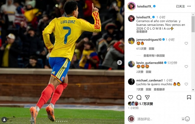 Dias posted a photo celebrating his goal on social media with the text: "We end 2025 with victory and a wonderful feeling. See you in 2026, Colombian fans!"