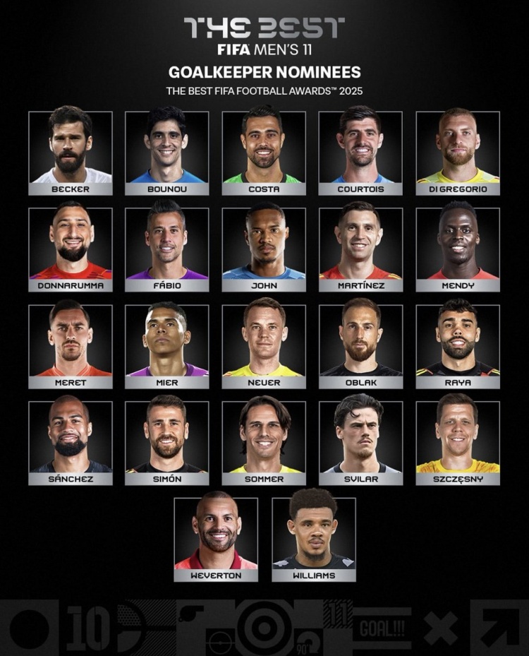 FIFA officially announced the candidates for the 2025 Best Team goalkeeper position. Courtois, Donnarumma, Alisson and Neuer are on the list.