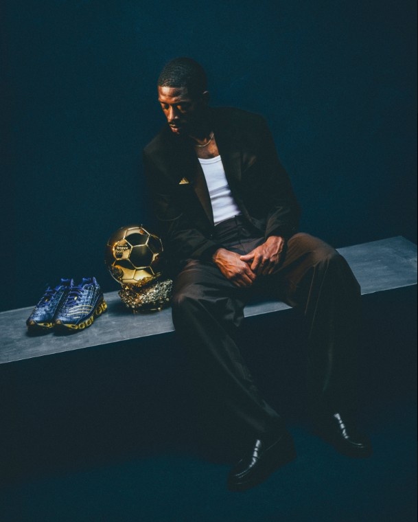 According to French media Foot Mercato, Adidas launched commemorative shoes for Dembele Golden Ball. The 2025 Golden Globe Awards Ceremony was held today, and French striker Dembele won this year's Golden Globe Award. Dembele is 28 years old. In the 24/25 season, he made 53 appearances for Paris Saint-Germain, scoring 35 goals and 16 assists. In terms of the national team, Dembele played 7 times for the French national team during the selection cycle and scored 2 goals.