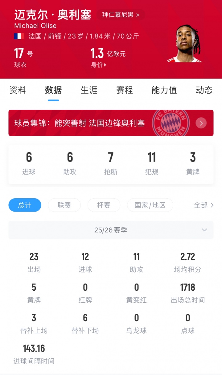 Great value! Olise led the reversal with five goals in a single game. Bayern brought in 53 million last year and is now worth 130 million.