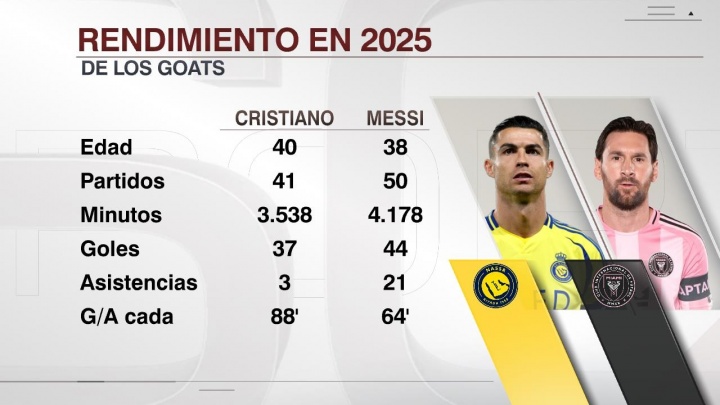 Melo s statistics this year: Messi has 44 goals and 21 assists in 50 games, Ronaldo has 37 goals and 3 assists in 41 games
