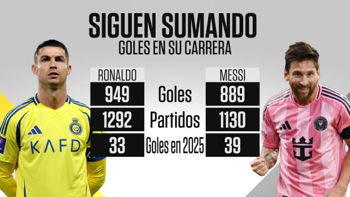 C Ronaldo scored 949 goals in 1,292 games in his career, while Messi scored 889 goals in 1,130 games. In 2025, Messi scored 39 goals and Ronaldo 33 goals.