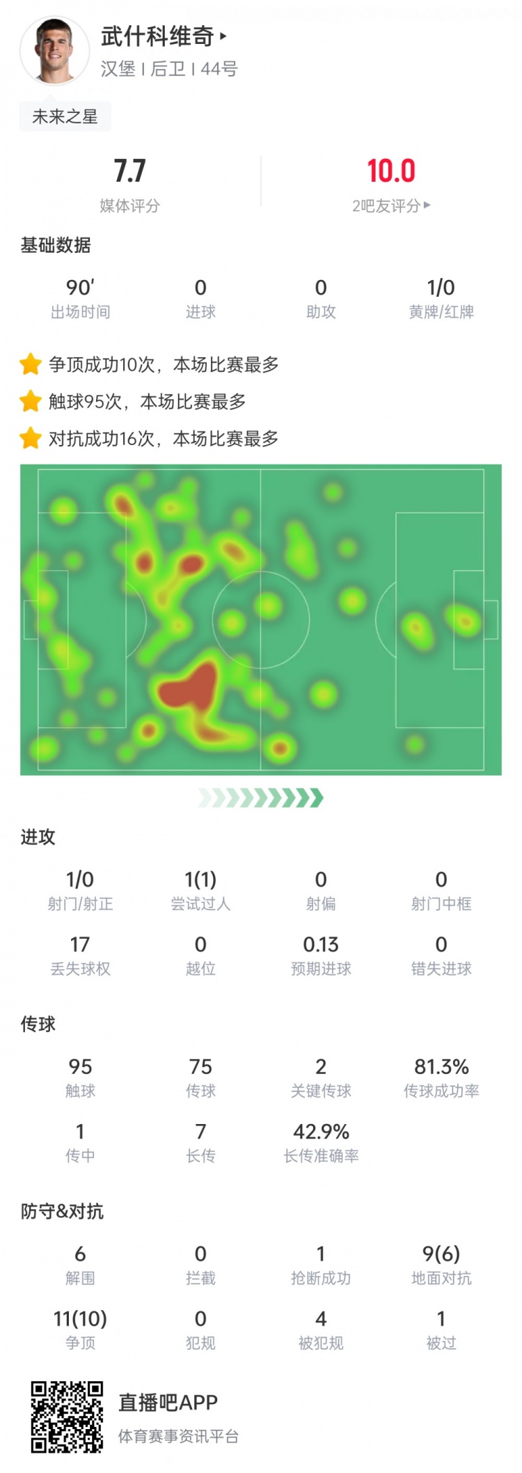 In the 8th round of the Bundesliga, 18-year-old central defender Vushkovic played the entire game. Hamburg lost 0-1 at home to Wolfsburg.