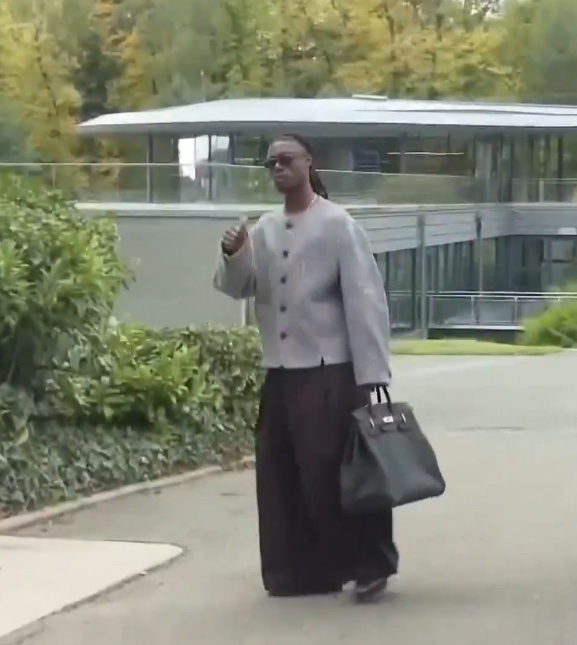 What s the look? Camaven joined the French team to report: Mandarin jacket + wide-leg pants + handbag